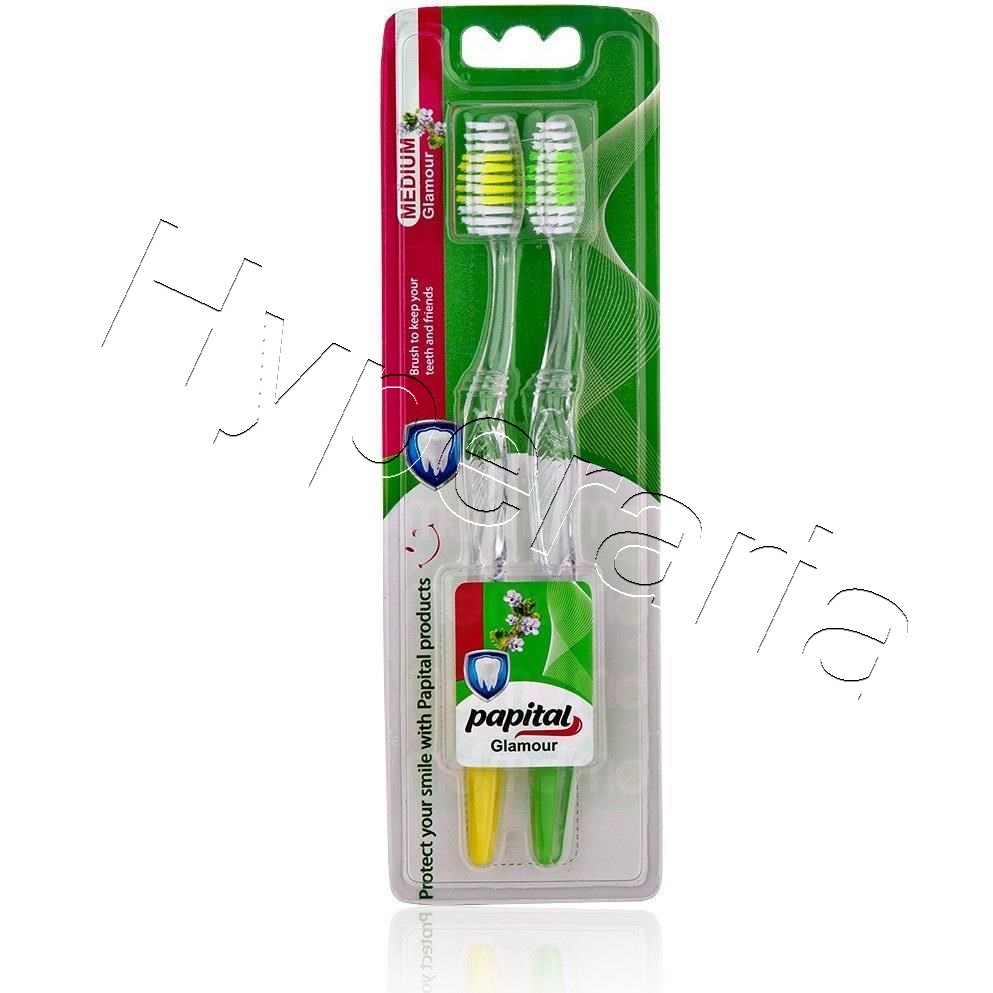 مسواک گلامور(کریستال دوقلو) پاپیتال دارای درجه سختی متوسط و قابلیت ارتجاعی بالا برای حرکت راحت در دهان همراه با قابلیت تمیزکنندگی عالی دندانها و فواصل دندانی بوده که با دارابودن سرپوش مخصوص موجبات دوری از هرگونه آلودگی را فراهم می آورد.با دارا بودن سرپوش مخصوص موجبات دوری از هرگونه آلودگی محیطی را ممکن می سازد. با دارا بودن ماساژور لثه، ریسک ابتلا به بیماری های لثه و دندان را کاهش داده و سبب پاکیزگی آنها و زدودن پلاکها می شوند.